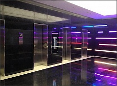 Лифт: 12 пассажирских и один грузовой (Otis).