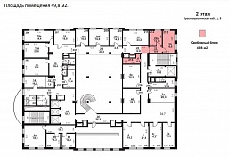 свободного назначения. На 2-м этаже расположена зона остекленных переговорных и офисных помещений, в которые ведет винтовая лестница из красного итальянского мрамора.
