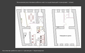 Капитальный ремонт закончен в 2018 г. В настоящий момент здание действует как гостиница 4 звезды. Дизайнерский ремонт в стиле Лофт. 29 комнат, площадью 8-22 кв.м. 150 рабочих места при планировке, близкой к существующей. Возможно размещение вывески арендатора на фасаде над входом. Атмосфера здания пропитана великими
